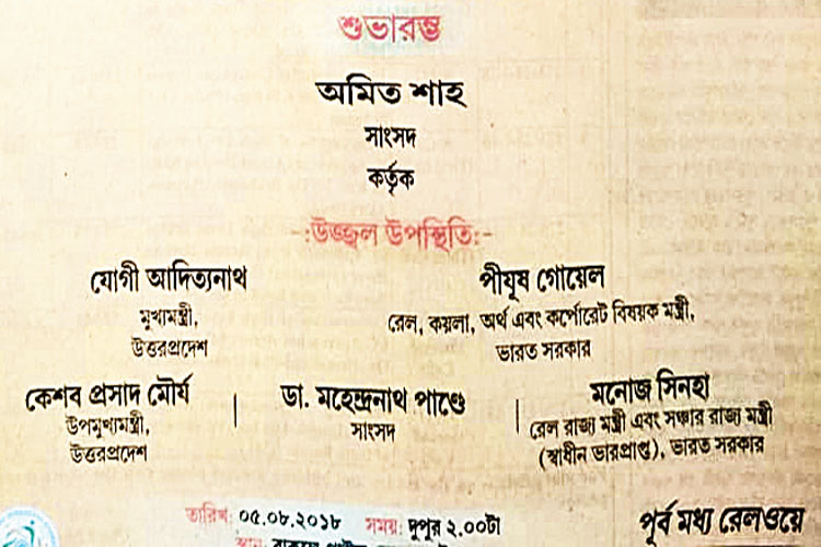 মোগলসরাই স্টেশনের নাম পরিবর্তন অনুষ্ঠানে কাগজে দেওয়া বিজ্ঞাপনে উত্তরপ্রদেশের মুখ্যমন্ত্রী এবং রেলমন্ত্রীরও উপরে স্থান পেলেন অমিত।