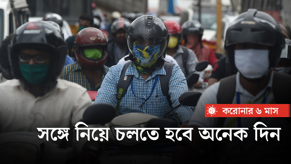 ছ’মাস পরেও কিন্তু অনেকটাই চিনেবুঝে ওঠা যায়নি এই নবাগত শত্রুকে। মোকাবিলার স্থায়ী পথ তো দূরের কথা— কী ভাবে এই সংক্রমণ থেকে নিজেদের দূরে রাখা সম্ভব, কোন পথে এর সংক্রমণ ছড়ায়, কী ভাবে আটকানো যায় এর দ্রুত ছড়িয়ে পড়া— এ সব নিয়েও হোঁচট খেতে খেতে এগোতে হচ্ছে। অনেক উত্তর চার মাস আগে যা ছিল, চার মাস পরে তা বদলে গিয়েছে। সব মিলিয়ে ধোঁয়াশা এখনও অনেক। তবে এই ধোঁয়াশার মধ্যে থেকেই করোনাভাইরাস নিয়ে আমরা কিছু কিছু জিনিস মোটামুটি নিশ্চিত ভাবে জেনে বা বুঝে গিয়েছি, যা ছ’মাস পরের এই পরিস্থিতিতে এক-দুই-তিন-চার করে বলে ফেলা সম্ভব।