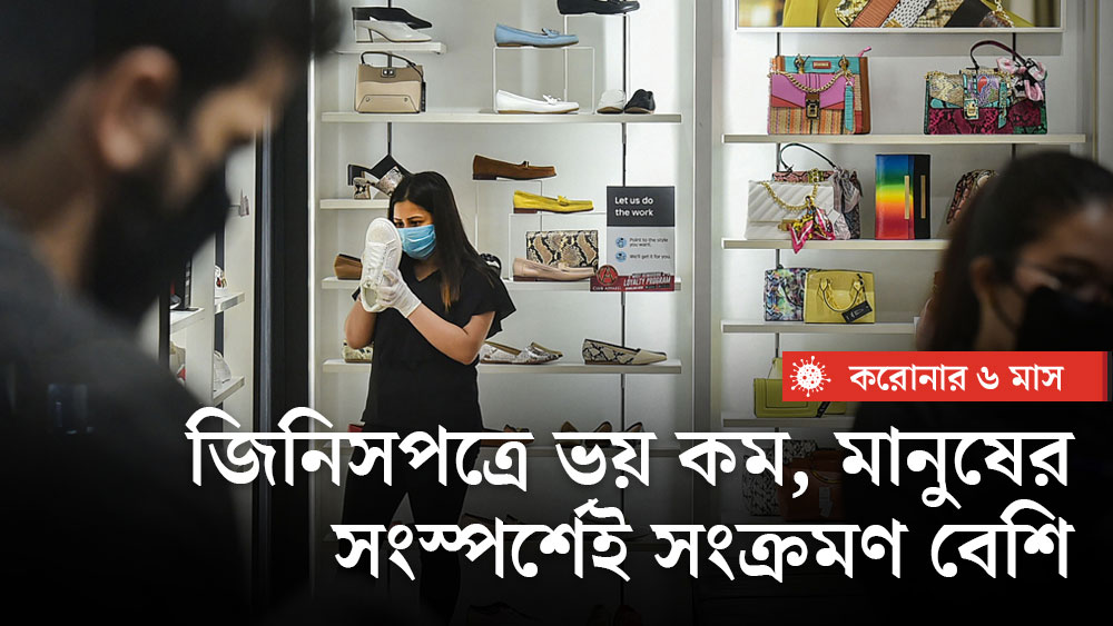 সম্প্রতি আমেরিকার ‘সেন্টার্স ফর ডিজিজ কন্ট্রোল অ্যান্ড প্রিভেনশন’ (সিডিসি)-এর বিজ্ঞানীদের গবেষণাতেও উঠে এসেছে, জিনিসপত্রের মাধ্যমের চেয়ে মানুষের সঙ্গে মানুষের সংস্পর্শেই অনেক অনেক বেশি সংক্রমণ ঘটাচ্ছে এই ভাইরাস। সিডিসির বিজ্ঞানীরা সমীক্ষায় দেখেছেন, বহু হাত ঘুরে অনলাইনে আসা কোনও পার্সেলের থেকেও এক জন সংক্রামিত ব্যক্তির সরাসরি সংস্পর্শে আসা অনেক বশি ঝুঁকির। সমীক্ষায় আরও উঠে এসেছে, আলমারি ও ড্রয়ার জাতীয় জিনিসে এই ভাইরাস প্রায় ২৪ ঘণ্টা বেঁচে থাকে। ধাতু ও প্লাস্টিকে বাঁচে প্রায় তিন দিন। কিন্তু আশ্রয় নেওয়ার মতো মানবশরীর না পেলে এই ভাইরাস ততটা ভয়ঙ্কর হয়ে উঠতে পারে না।