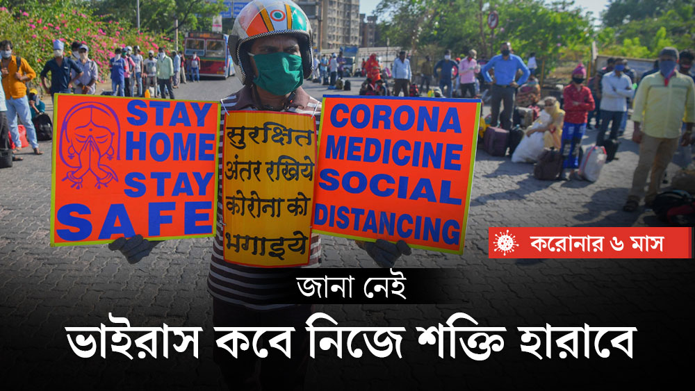 ঠিক কবে এবং কার শরীরে প্রথম কোভিড-১৯ সংক্রমণ হয়েছিল, জানা নেই আমাদের। এই অতিমারি পর্বের স্থায়িত্বকাল কতটা হবে, তা-ও ঘোর অস্পষ্ট। তবে যেটা নিয়ে সংশয় নেই তা হল, ডিসেম্বর ২০১৯-এর গোড়ার দিকে এই সংক্রমণ প্রথম ছড়িয়ে পড়েছিল চিনের উহানে। অর্থাৎ, দেখতে দেখতে অর্ধেকটা বছর বা ছ'টা মাস কেটে গেল এই ভাইরাসকে সঙ্গে নিয়ে।