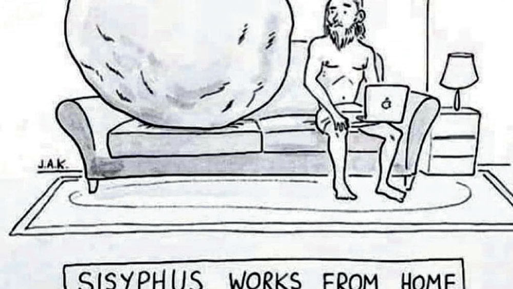 ভারতেও করোনা-সংক্রমণ ছড়িয়েছে। করোনাভাইরাস নিয়ে রঙ্গ-রসিকতা তাতে থেমে নেই। সেই রসিকতায় যেমন এসেছে উত্তম-সুচিত্রার ‘সপ্তপদী’, তেমনই এসেছেন শাহরুখ-কাজলের ‘দিলওয়ালে দুলহনিয়া লে জায়েঙ্গে’। করোনাভাইরাস ঠেকাতে নানা সাবধানতার মধ্যে একটি অন্যতম হল ভিড় এড়িয়ে চলা। সেই প্রসঙ্গ টেনেই সপ্তপদীর অমর সংলাপ, ‘‘ও যেন আমাকে টাচ না করে!’’ ঘুরছে মোবাইলে। তেমনই ঘুরছে, শাহরুখের হাত ধরে কাজলের ট্রেনের ওঠার দৃশ্য দিয়ে তৈরি হওয়া মিম, যেখানে দু’জনের মুখেই মাস্ক, কাজলের হাতে হ্যান্ড স্যানিটাইজ়ার। নানা সংস্থা এখন কর্মীদের বাড়ি থেকে কাজের নির্দেশ দিচ্ছে। তা নিয়ে তৈরি একটি কার্টুনে দেখা যাচ্ছে গ্রিক পুরাণের চরিত্র সিসিফাসকে। পাহাড়ের চূড়ায় নিয়ে যাওয়ার বদলে পাথরের গোলা নিয়ে ল্যাপটপ কোলে সিসিফাসও সোফায় বসে।