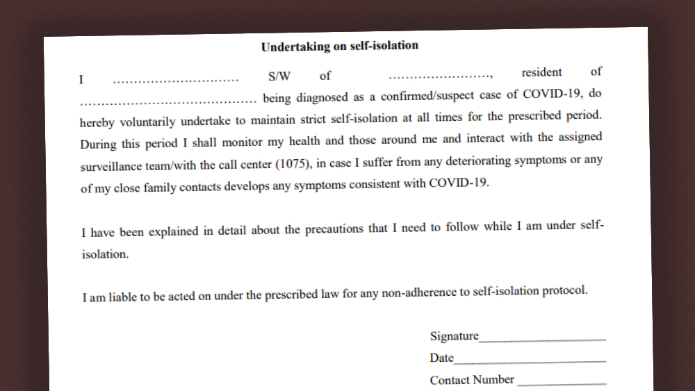 বাড়িতে থেকে চিকিৎসা করাতে গেলে এই মর্মে মুচলেকা দিতে হবে কোভিড-আক্রান্তকে।