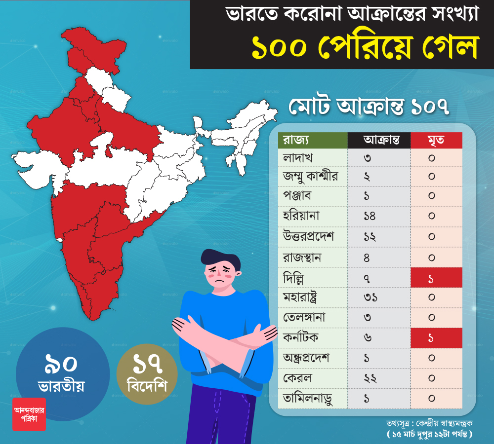 • আক্রান্ত ১০৭ (কেন্দ্রের হিসেব)