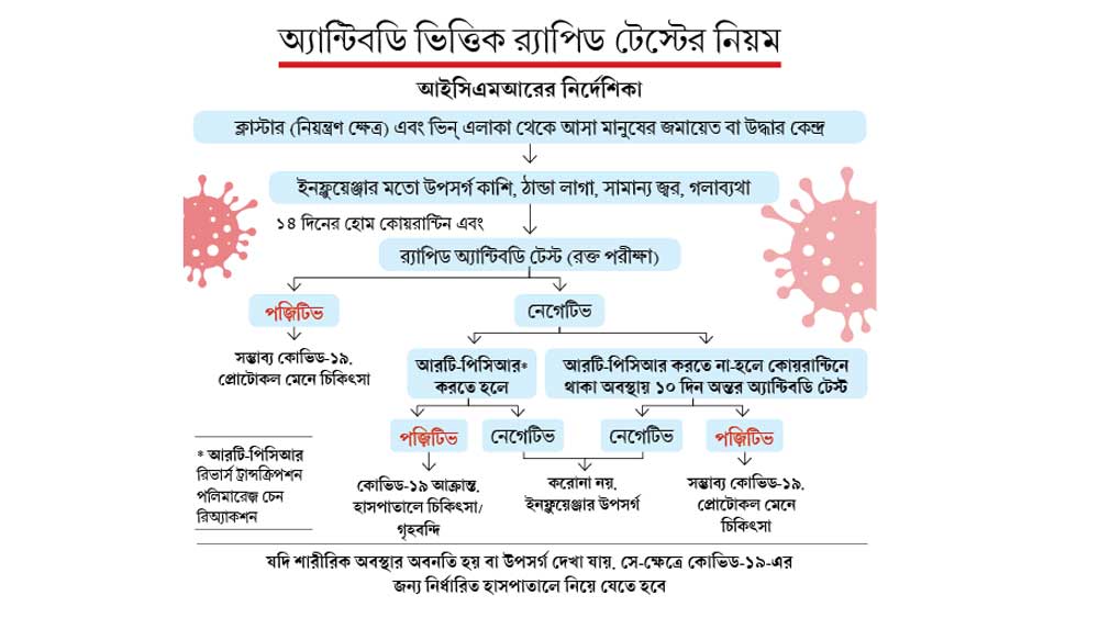 বলা হচ্ছে, কোভিড-১৯ মোকাবিলায় সরকার ‘প্রো-অ্যাকটিভ, কঠোর ও অনমনীয়’ হতে দৃঢ়প্রতিজ্ঞ। প্রতিটি গণ্ডিবদ্ধ এলাকায় কাজ হবে পঞ্চমুখী। এক, প্রতিটি ভৌগোলিক গণ্ডিকে বিচ্ছিন্ন রাখা। দুই, সামাজিক সংসর্গ থেকে দূরে থাকার বিষয়টি কঠোর ভাবে পালন করা। তিন, অনেক বেশি ও নিরন্তর নজরদারি। চার, প্রয়োজন বুঝলেই কোয়রান্টিন বা চিকিৎসার ব্যবস্থা করা। পাঁচ, সংক্রমণের প্রকৃত ছবিটা জানতে সরকার খুব শীঘ্রই ব্যাপক হারে ‘র্যাপিড অ্যান্টিবডি টেস্ট’ শুরু করতে চলেছে।