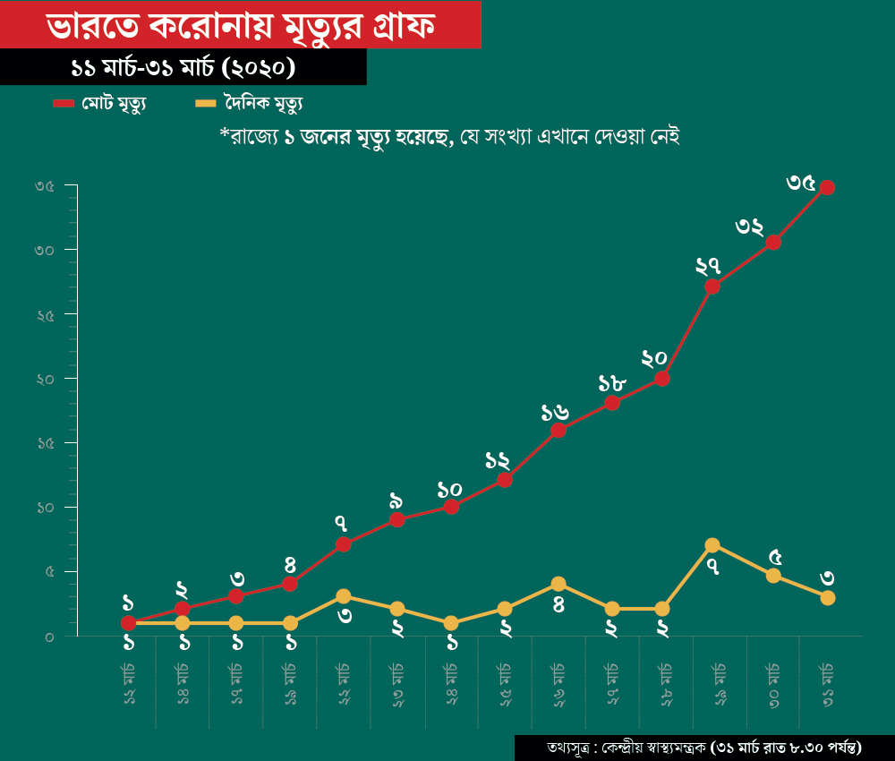 তবে মৃত্যুর নিরিখে দেশের মধ্যে সবচেয়ে শীর্ষস্থানে রয়েছে মহারাষ্ট্র। ওই রাজ্যে মৃতের সংখ্যা ৯। তার পরে রয়েছে গুজরাত। সেখানে ৬ জনের মৃত্যু হয়েছে।
