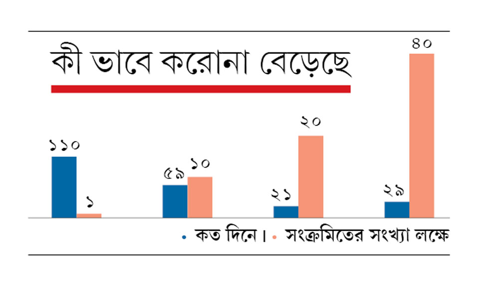 • করোনা সংক্রমিত সংখ্যা দ্বিগুণ হওয়ার হারে - এক নম্বরে (২৯ দিন)