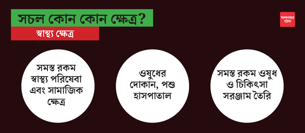 ছাড় দেওয়া হয়েছে কিছু সামাজিক ও জন পরিষেবামূলক ক্ষেত্রেও।