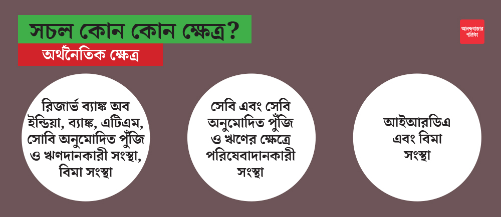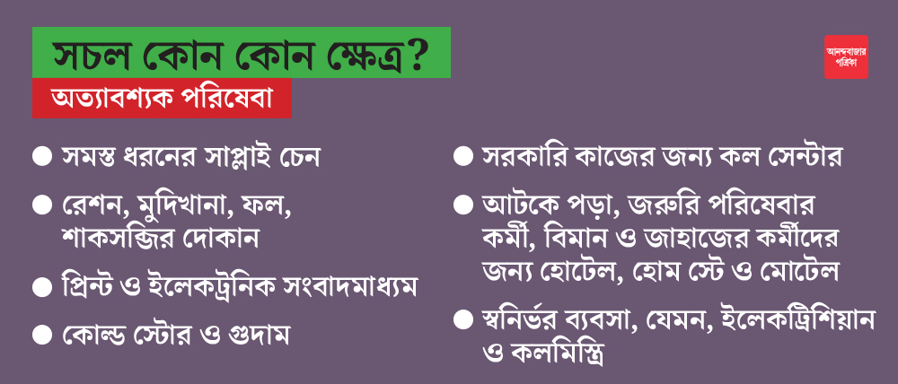 অর্থনৈতিক কর্মকাণ্ড চালিয়ে যেতে ব্যাঙ্ক, এটিএম, বিমা-সহ নানা ক্ষেত্র লকডাউনের আওতার বাইরে রাখা হয়েছে।