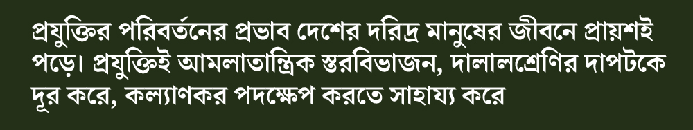 প্রযুক্তির পরিবর্তনের প্রভাব দেশের দরিদ্র মানুষের জীবনে প্রায়শই পড়ে। প্রযুক্তিই আমলাতান্ত্রিক স্তরবিভাজন, দালালশ্রেণির দাপটকে দূর করে, কল্যাণকর পদক্ষেপ করতে সাহায্য করে।
