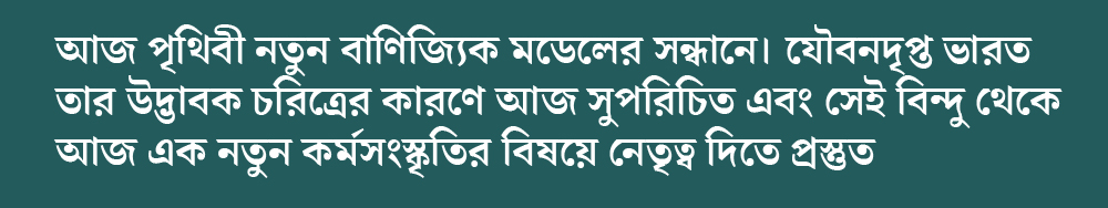 যৌবনদৃপ্ত ভারত তার উদ্ভাবক চরিত্রের কারণে আজ সুপরিচিত এবং সেই বিন্দু থেকে আজ এক নতুন কর্মসংস্কৃতির বিষয়ে নেতৃত্ব দিতে প্রস্তুত।