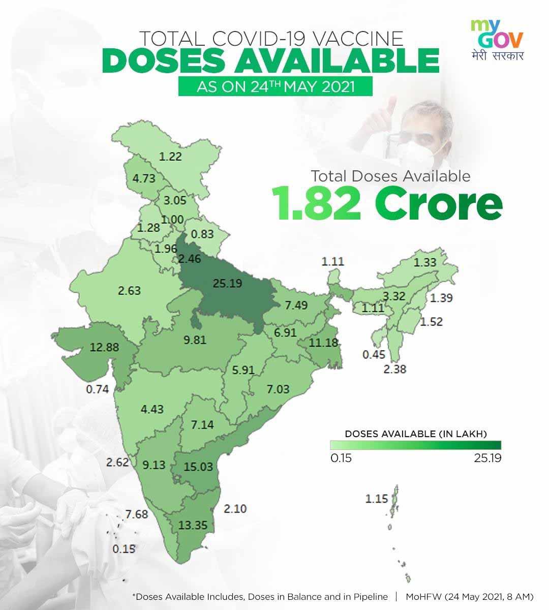 স্বাস্থ্য মন্ত্রকের ওই তথ্য জানাচ্ছে,এই মুহূর্তে সবচেয়ে বেশি টিকা রয়েছে দেশের বৃহত্তম রাজ্য (জনসংখ্যার নিরিখে) উত্তরপ্রদেশের হাতে (২৫ লক্ষ ১৯ হাজার)। দ্বিতীয় স্থানে অন্ধ্রপ্রদেশ (১৫ লক্ষ ৩ হাজার)। তৃতীয় তামিলনাড়ু (১৩ লক্ষ ৩৫ হাজার) এবং চতুর্থ প্রধানমন্ত্রী নরেন্দ্র মোদীর রাজ্য গুজরাত (১২ লক্ষ ৮৮ হাজার)। পশ্চিমবঙ্গ রয়েছে পঞ্চম স্থানে।
