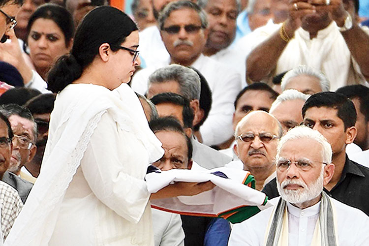 আজ নরেন্দ্র মোদী ও অমিত শাহের নেতৃত্বে সেই বিজেপিই বাজপেয়ীর শেষকৃত্যের পুরো অনুষ্ঠানের নিয়ন্ত্রণ হাতে তুলে নেয়। মোদীই বলে দেন, অন্য কেউ নন। নমিতাই মুখাগ্নি করবেন। সারা জীবন যিনি ‘বাবজি’-কে দেখেছেন, তিনি এ কাজ করবেন না তো কে করবেন? কন্যাকে দিয়ে মুখাগ্নির প্রশ্নে বিজেপির রক্ষণশীল নেতারা খুশি নন। তবু বিজেপি-সঙ্ঘের নেতাদের সামনে নমিতাই যখন মুখাগ্নি করছেন, তখন, তাঁর চোখের জল শুকিয়ে গিয়েছে। কিন্তু কেঁদে চলেছেন নাতনি নীহারিকা। বাজপেয়ী আদর করে ডাকতেন নেহা বলে। বাড়িতে দীর্ঘ সময় কাটাতেন তাঁর সঙ্গে। বাজপেয়ীর দেহ যে জাতীয় পতাকায় মোড়া ছিল, সেটা এ দিন তুলে দেওয়া হল নেহার হাতেই।
