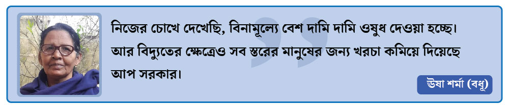 ‘‘কাজ করে মেয়েদের পেট চালাতে হয় আমায়। মেয়েদের মুখের দিকে তাকিয়েই বাঁচি আমি। আগে তো ওদের পড়ানোর টাকাই ছিল না। এখন আপের জন্য কোনও টাকা ছাড়াই পড়ছে ওরা। বই-খাতা সব স্কুল দেয়। আমার মেয়েদের আর বাড়ি বাড়ি কাজ করে খেতে হবে না। পড়ে কোনও না কোনও কাজ পাবেই ওরা। আপ সরকার আমাদের মতো গরিবের সরকার। যার কেউ নেই তাদের আপ সরকার আছে।’’