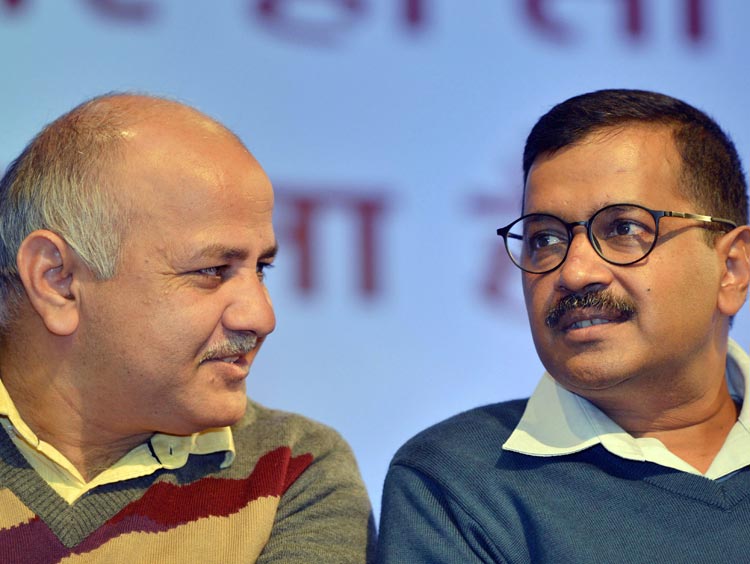 দিল্লির উপমুখ্যমন্ত্রী মণীশ সিসৌদিয়া এবং মুখ্যমন্ত্রী অরবিন্দ কেজরীবাল। ছবি: পিটিআই।