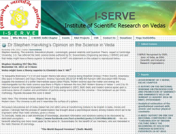 ‘আই-সার্ভ’ বা, ‘ইনস্টিটিউট অফ সায়েন্টিফিক রিসার্চ অন ভেদাস’-এর সেই ওয়েবসাইট
