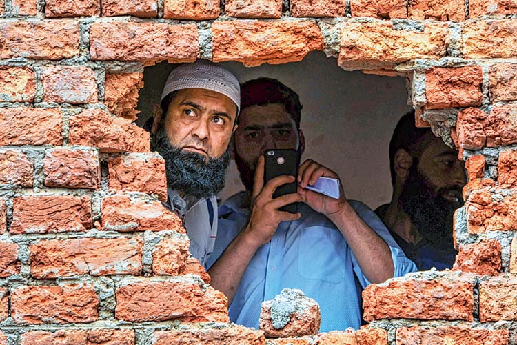 সংঘর্ষে উড়ে গিয়েছে দেওয়াল। শ্রীনগরের ছাট্টাবল এলাকায়।