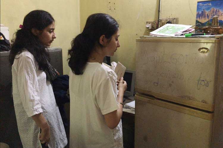 নগাঁওতে বাবার রুমে রেখে যাওয়া আত্মঘাতী নোটের সামনে বিশ্বনাথ মজুমদারের দুই মেয়ে। ছবি: ফেসবুক থেকে সংগৃহীত।