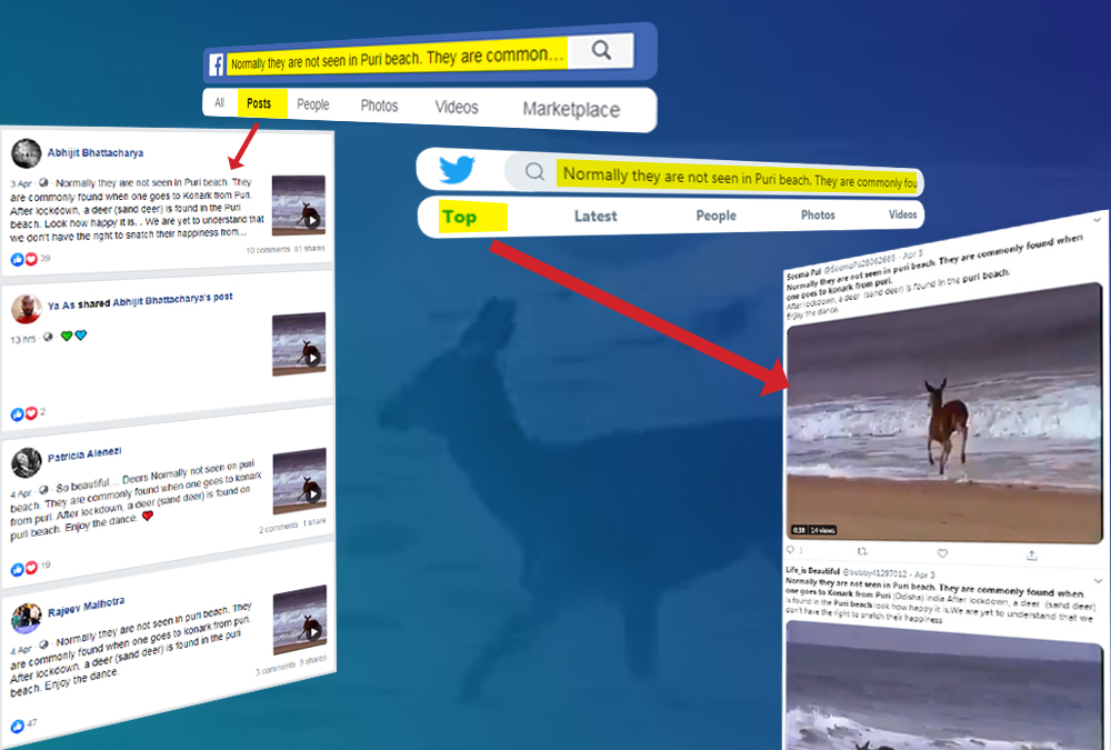 আসল ভিডিয়োটি ২০১৫ সালের ১০ নভেম্বর ফেসবুকে আপলোড করা হয়েছিল। ভিডিয়োটি ২ কোটি ২০ লক্ষ বার দেখা হয়। শেয়ার হয় ৬ লক্ষ ৮০ হাজার বার। ভিডিয়োটির পারফরম্যান্স দেখে বিবরণে তিনি লিখেছিলেন, একটি পূর্ণ দৈর্ঘ্যের সিনেমার চিত্রনাট্যের প্রয়োজনে তিনি হরিণটির ওই ভিডিয়োটি তোলেন। ভিডিয়োটি এত মানুষের পছন্দ হওয়ায় তিনি অভিভূত। ফলে ভিডিয়োটি পুরীর নয় এবং লকডাউন পরবর্তী সময়েরও যে নয় তা বোঝাই যাচ্ছে। ‘‘লকডাউনের পর প্রকৃতি নিজের হারানো জায়গা পুনর্দখল করছে...’’ বলে ছবি, ভিডিয়ো শেয়ার করার হিড়িক উঠেছে। সত্যি, মিথ্যা দেখার প্রয়োজন বোধ করছেন না কেউ। এই ভিডিয়োটিও সে ভাবেই ভাইরাল হয়।