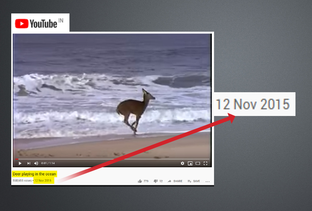 ভিডিয়োটি বছর পাঁচেকের পুরনো, এক ফরাসি ফিল্ম নির্মাতার তোলা। আমরা ‘deer sea beach video’ লিখে গুগ্লে সার্চ করি। গুগ্লে ওই একই ভিডিয়োর একাধিক ইউটিউব লিঙ্ক পাওয়া যায়, যেগুলি ২০১৫ সালে আপলোড করা। তারই একটি বিবরণে লেখা, ভিডিয়োটি দক্ষিণ ফ্রান্সে অ্যান্টনি মার্টিনের তোলা।