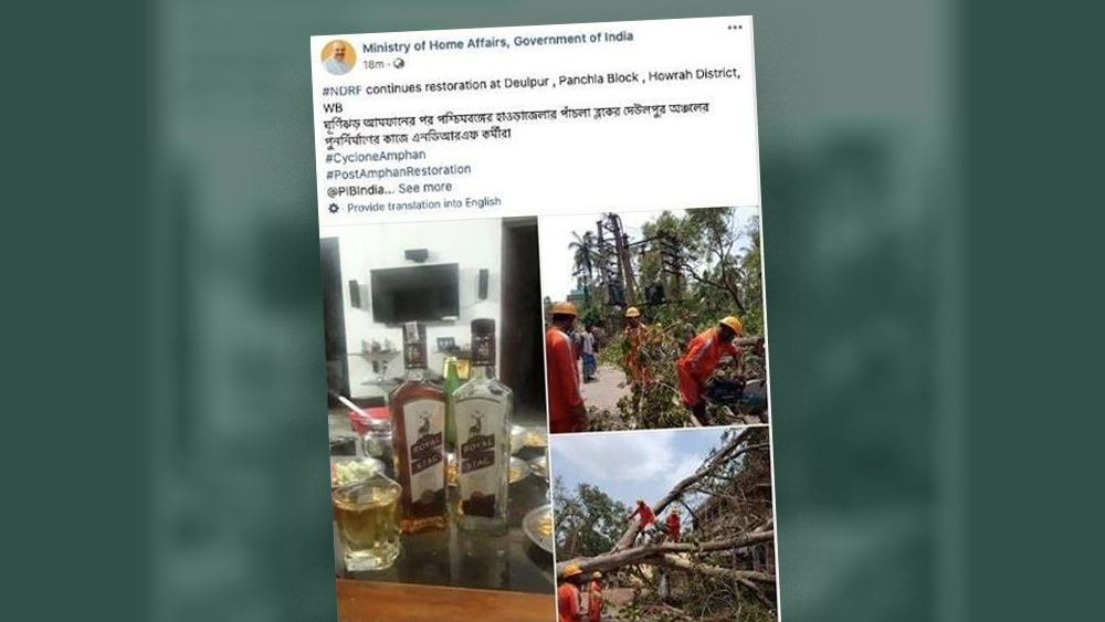 জল্পনা শুরু হয়েছিল ওই ফেসবুক পোস্টের পর থেকেই। গত ২৮ মে স্বরাষ্ট্রমন্ত্রকের ফেসবুক পেজে একটি পোস্ট করা হয়। তাতে হাওড়ার পাঁচলার দেউলপুরে এনডিআরএফ কর্মীরা কী ভাবে গাছ সরানোর কাজ করছেন, সেটাই তুলে ধরা হয়েছিল কয়েকটি ছবিতে। কিন্তু সেই রকম দু’টি ছবির সঙ্গেই তৃতীয় একটি ছবি পোস্ট করা হয়। তাতে একটি টেবিলের উপর রাখা দু’টি হুইস্কির বোতল, গ্লাসে রাখা মদ ও চানাচুরের মতো কিছু ভাজাভুজির ছবি। এই ছবি ঘিরেই গোল বাধে।