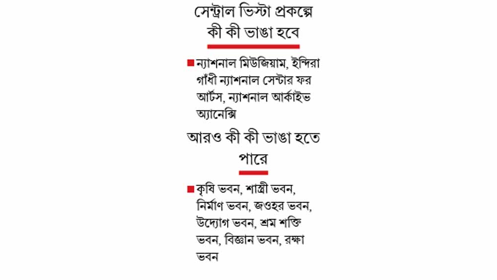 শুধু ন্যাশনাল মিউজিয়াম নয়। দেশের রাজধানী বলতেই যে সব ছবি ভেসে ওঠে, তার মধ্যে অন্তত এক ডজন ভবন, সরকারি দফতর ভেঙে গুঁড়িয়ে দেওয়া হবে। মোদী সরকারের নগরোন্নয়ন মন্ত্রকের বক্তব্য, এখনও পর্যন্ত সিদ্ধান্ত অনুযায়ী, ন্যাশনাল মিউজিয়ামের পাশাপাশি ন্যাশনাল আর্কাইভের অ্যানেক্সি ভবন ও ইন্দিরা গাঁধী ন্যাশনাল সেন্টার ফর আর্টস ভেঙে ফেলা হবে। ন্যাশনাল আর্কাইভের আদি হেরিটেজ ভবন থাকবে। ইন্দিরা গাঁধী ন্যাশনাল সেন্টার ফর আর্টস আপাতত জনপথ হোটেলে সরিয়ে নিয়ে যাওয়া হবে। তার পর জামনগর হাউস চত্বরে নতুন ভবন তৈরি হলে সেখানেই এই সেন্টারের ঠিকানা হবে।