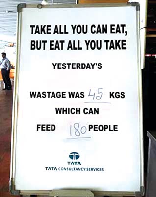 সরকারি সমীক্ষা বলছে, এ দেশে বছরে ৯২ কোটি ৬৫১ কোটি টাকার খাবার নষ্ট হয়। যা দিয়ে বিহারের মতো রাজ্যকে সারা বছর খাওয়ানো যেতে পারে। টাটা সংস্থার ক্যান্টিনগুলি যেমন মেপে খাওয়াতেই উৎসাহ দেয়। কিন্তু রেস্তোরাঁ-কর্তারা বলছেন, ভোজবাড়িতে অপচয় হয়, রেস্তোরাঁ-হোটেলে নয়। অঞ্জনবাবুর কথায়, ‘‘রেস্তোরাঁয় ক’জন লোক আসতে পারেন তা মেপেজুপেই রান্না হয়। বাড়তি খাবার কর্মচারীদের মধ্যে ভাগাভাগি হয়।’’ তাঁর মতে, রেস্তোরাঁর খাবারের মাপ ঠিক করাটা সরকারের এক্তিয়ারের বাইরে। দক্ষিণ কলকাতার একটি রেস্তোরাঁ ম্যানেজার কল্লোল বন্দ্যোপাধ্যায়ও বললেন, ‘‘মানুষের খাবারের মাপ চাপিয়ে দিলে তো মুশকিল।’’ রামবিলাস অবশ্য বলছেন, ‘থালি’তে হস্তক্ষেপ করা হবে না। যা হবে আ-লা-কার্ট প্লেটেই হবে।
