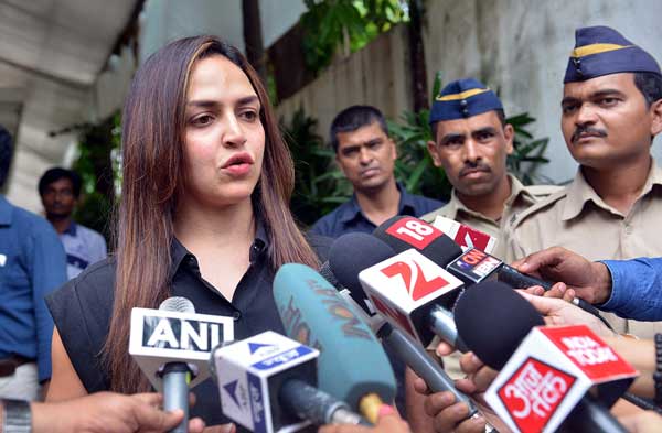 সাংবাদিকদের মুখোমুখি এষা। ছবি: এএফপি।