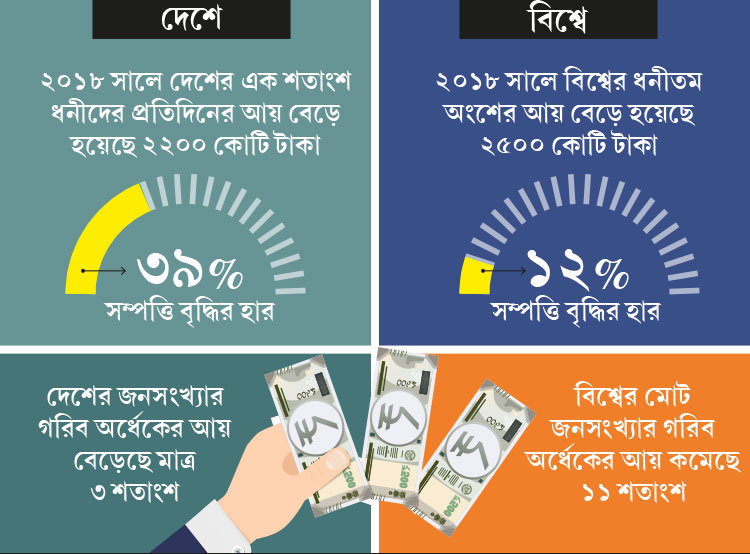 দেশের এক শতাংশ ধনীর এক দিনের আয় ২২০০ কোটি টাকা!