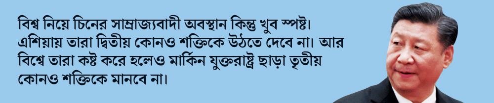 এটা প্রতিষ্ঠিত সত্য যে— চিন তাদের আগ্রাসী সাম্রাজ্যবাদী অবস্থান থেকে বিশ্ববাজারে আধিপত্য কায়েম করতে যা যা করা দরকার, তা সুযোগ পেলেই করে ফেলবে। আজকের দুনিয়ায় পেশীর বলের থেকেও অনেক বেশি শক্তিশালী আর্থিক বল, আর তা ব্যবহার করতে দু’বারও ভাবে না চিন। আর তা করে সেই সামন্ততান্ত্রিক পথেই। রাস্তাটা সোজা। উন্নয়নের গাজর দেখিয়ে ঋণগ্রস্ত করে তার পর নিজের আধিপত্য বিস্তার করা।