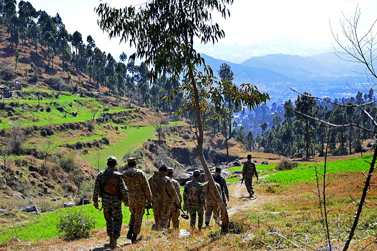 বোমাবর্ষণের পর বালাকোটের জাব্বা টপের কাছে পাক সেনার টহল। ছবি: এএফপি।
