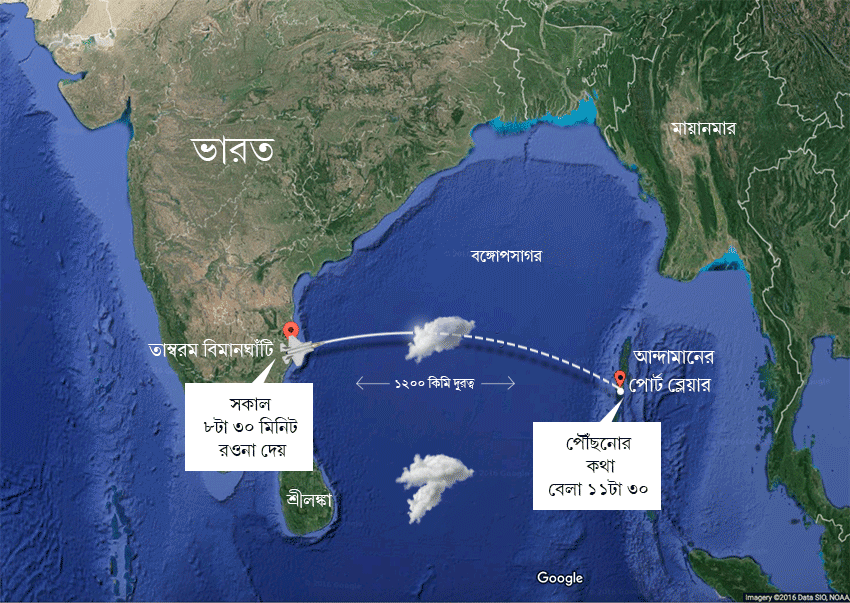 সকাল সাড়ে এগারোটায় পোর্ট ব্লেয়ারে বিমানটি নামার কথা ছিল। জানা গিয়েছে, এক টানা প্রায় সাড়ে ৪ ঘণ্টা ওড়ার মতো জ্বালানি ছিল বিমানটিতে। অনেক সময় বিমানে যান্ত্রিক ত্রুটির কারণে দেরি হতে পারে বলে কিছুক্ষণ অপেক্ষা করা হয়। কিন্তু বারোটা বাজার পরেও বিমানটি পোর্ট ব্লেয়ারে না নামায় আশঙ্কা বাড়তে শুরু করে। কারণ জ্বালানির হিসেব মতো বেলা একটার পরে বিমানটি আর কোনও ভাবেই আকাশে থাকতে পারে না। একবার ভাবা হয়েছিল, চেন্নাই এটিসি-র সঙ্গে যোগাযোগ বিচ্ছিন্ন হওয়ায় দিক ভুল করে মুখ ঘুরিয়ে কলম্বো চলে যেতে পারে বিমানটি। কিন্তু সেখান থেকেও কোনও খবর আসেনি। তার পরে আর দেরি না করে তল্লাশি অভিযান শুরু করা হয়।