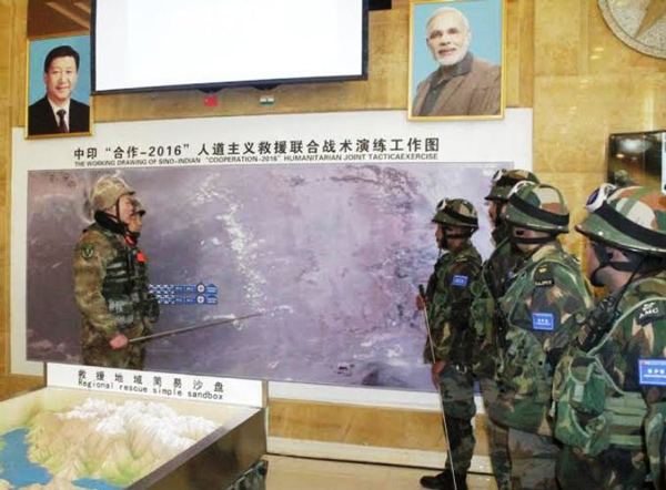 ভারত ও চিনের সশস্ত্র বাহিনী শনিবার লাদাখের চুসুল-মোল্ডো এলাকায় যৌথ মহড়া দিয়েছে। এই প্রথম লাদাখে লাইন অফ অ্যাকচুয়াল কন্ট্রোল-এ ভারত ও চিনের বাহিনী জয়েন্ট ট্যাকটিকাল এক্সারসাইজ আয়োজন করল। ভারতের তরফে কর্নেল রীতেশচন্দ্র সিংহ এবং চিনের তরফে কর্নেল কিউ য়ি-এর নেতৃত্বে ৩০ জন করে সেনা মহড়ায় অংশ নেয়। সীমান্তবর্তী এলাকায় বড় প্রাকৃতিক বিপর্যয় হলে দু’দেশের বাহিনী হাত মিলিয়ে কীভাবে বিপর্যয়ের মোকাবিলা করবে, মহড়া দেওয়া হয়েছে তা নিয়েই। ভারত ও চিনের বাহিনীর মধ্যে চিরকাল উত্তেজনা দেখতে অভ্যস্ত লাদাখের জন্য চিন-ভারত যৌথ মহড়া সম্পূর্ণ নতুন এক অভিজ্ঞতা। ‘সিনো-ইন্ডিয়া কোঅপারেশন ২০১৬’ নামে যে নতুন কর্মসূচি ভারত ও চিন যৌথভাবে শুরু করেছে, তার অঙ্গ হিসেবেই লাদাখে ভারত ও চিনের সামরিক বাহিনীর এই যৌথ মহড়া বলে প্রতিরক্ষা মন্ত্রক জানিয়েছে। এই কর্মসূচির আওতায় সম্প্রতি সিকিম সীমান্তেও যৌথ মহড়া দিয়েছে ভারত ও চিনের সশস্ত্র বাহিনী।