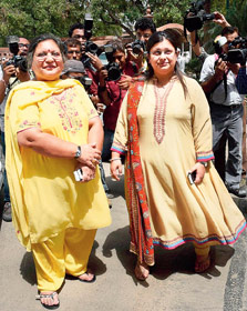 সংসদে হাজির অরুণ জেটলির স্ত্রী ও মেয়ে। বৃহস্পতিবার। ছবি: পিটিআই