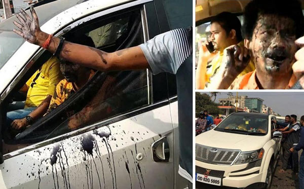 ক্ষিপ্ত জনতা এ ভাবেই পাপ্পুর মুখে কালি ছুড়ে দেয়।