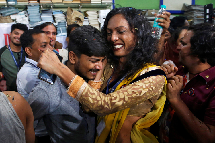 আনন্দের আলিঙ্গন। ছবি: রয়টার্স।
