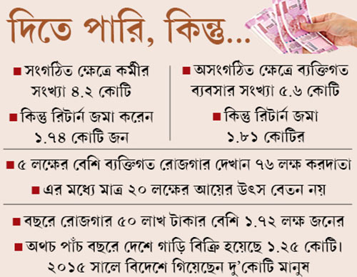 আয়কর রিটার্ন জমা দেওয়ার প্রক্রিয়াও কিছুটা সরল করার প্রস্তাব দিয়েছেন অর্থমন্ত্রী। বাজেট বক্তৃতায় তিনি বলেন, ‘‘যাঁদের ব্যক্তিগত আয় ৫ লক্ষ টাকার মধ্যে, তাঁরা যাতে এক পৃষ্ঠার একটি ফর্ম ভরেই রিটার্ন জমা দিতে পারেন, সেই ব্যবস্থা করার কথাও ভাবছে সরকার।’’ পাশাপাশি বাজেট প্রস্তাবে বলা হয়েছে, বেতনভুক কর্মীদের উৎস-মূলে কর বাবদ অতিরিক্ত টাকা কেটে নেওয়া হলে পরে তা ফেরতের সময় ওই টাকার উপরে সুদ দেওয়া হবে। তবে রিটার্ন জমা দিতে দেরি হলে এখন থেকে লেভি তথা জরিমানা করা হবে।