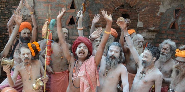 আজ অম্বুবাচীর প্রবৃত্তির আগের দিন সকাল থেকে চাপা টেনশন ছিল সাধুদের মতিগতি নিয়ে। গায়ে ছাই মেখে তৈরি হচ্ছিলেন তাঁরা। নগ্নতা ঠেকাতে তৈরি ছিল প্রশাসন। নিষেধাজ্ঞা ওড়ানোর 'বিপ্লবী নগ্নতা' ক্যামেরাবন্দী করতে তৈরি ছিল সংবাদমাধ্যমও। কিন্তু শেষ পর্যন্ত নাগা সন্ন্যাসীর দল আসরে নামলেন কৌপিন পরেই। যাঁরা সঙ্গে অতিরিক্ত বস্ত্রখণ্ডের বাহুল্য রাখেননি, তাঁরাও অন্যের গামছা ধার করে গোপনাঙ্গ জড়িয়ে নেন। প্রথমে চলে যোগসাধনা। তার পর ত্রিশূল, তরবারি হাতে মন্দির প্রদক্ষিণে বেরোন তাঁরা। হুঙ্কার, মন্ত্রোচ্চারণ, অট্টহাসি সবই ছিল, তবে কী না, তুচ্ছ বস্ত্রখণ্ডের আবডালটুকু কোথায় যেন তাঁদের আগের মতো প্রাণোচ্ছল হতে দিল না।