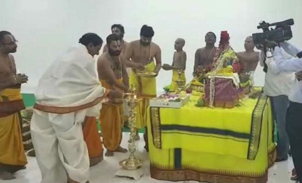 নতুন বাড়ির পুজোয় কে চন্দ্রশেখর রাও।
