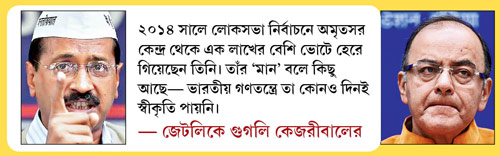 দিল্লি ক্রিকেট সংস্থার দুর্নীতি নিয়ে অভিযোগ তুলে জেটলিকে নিশানা করার পরে কেজরীবাল ও তাঁর আম আদমি পার্টির পাঁচ নেতার বিরুদ্ধে মানহানির এই মামলা করেছেন কেন্দ্রীয় অর্থমন্ত্রী। আদালতে আজ তারই জবাব পেশ করলেন কেজরীবাল। তাঁর বক্তব্য, জনজীবনে জেটলির ‘মান’ কোথায়, যে তাঁকে রক্ষা করতে হবে? ২০১৪ সালে লোকসভা নির্বাচনে অমৃতসর কেন্দ্র থেকে এক লাখের বেশি ভোটে হেরে গিয়েছেন তিনি। তাঁর ‘মান’ বলে কিছু আছে— ভারতীয় গণতন্ত্রে তা কোনও দিনই স্বীকৃতি পায়নি।
