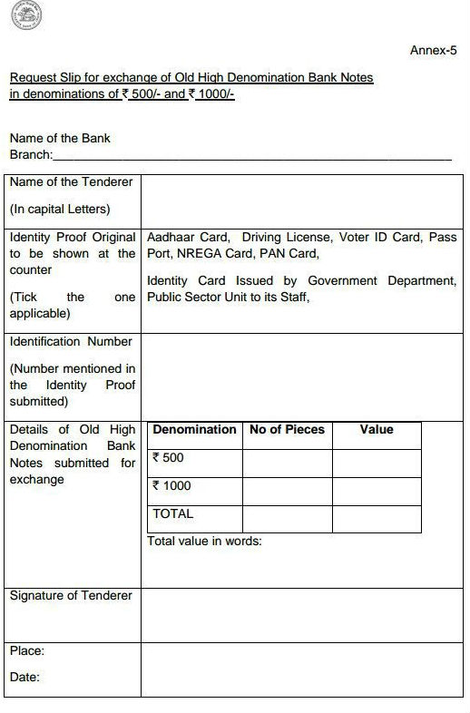 নোট বদল করতে হলে পূরণ করতে হবে এই ফর্মটিই।