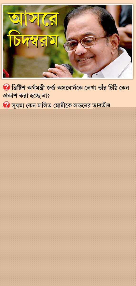 চিদম্বরম আজ মোদী সরকারের উপরে চাপ বাড়িয়ে অবিলম্বে ললিত মোদীকে দেশে ফেরানোর দাবি তুলেছেন। প্রাক্তন কেন্দ্রীয় অর্থমন্ত্রীর বক্তব্য, ইউপিএ মন্ত্রিসভায় আলোচনার পরে তৎকালীন ব্রিটিশ অর্থমন্ত্রী জর্জ অসবোর্নকে চিঠি লিখে ললিতকে ভারতে ফেরানোর দাবি জানিয়েছিলেন তিনি। সেই চিঠিতে কাজ না-হওয়ায় আরও কড়া সুরে দ্বিতীয় চিঠি লিখেছিলেন। দেখাও করেছিলেন অসবোর্নের সঙ্গে। অসবোর্নকে লেখা তাঁর চিঠি প্রকাশের দাবির পাশাপাশি ললিতকে দেশে ফেরাতে গত এক বছরে নরেন্দ্র মোদীর সরকার কী করেছে, প্রশ্ন তুলেছেন চিদম্বরম।