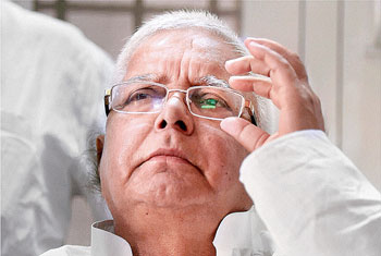 নয়াদিল্লিতে সাংবাদিকদের মুখোমুখি লালু প্রসাদ।
