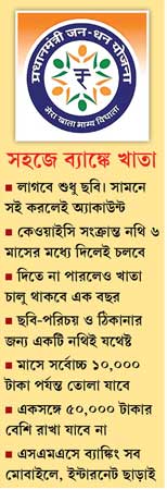 সকলের জন্য ব্যাঙ্ক অ্যাকাউন্ট খুলতে মোদী সরকারকে দু’দিকে চেষ্টা চালাতে হয়েছে মাস আড়াই ধরে। এক দিকে চেষ্টা চলেছে রিজার্ভ ব্যাঙ্ক ও রাষ্ট্রায়ত্ত ব্যাঙ্কের কর্তাদের পাশে পাওয়ার। এ জন্য রির্জাভ ব্যাঙ্কের গভর্নর রঘুরাম রাজনের সঙ্গে বৈঠকের পাশাপাশি দেশের ৭ লক্ষ ২৫ হাজার ব্যাঙ্ক অফিসারকে ব্যক্তিগত ভাবে ইমেল পাঠিয়েছেন প্রধানমন্ত্রী। অন্য দিকে সব মোবাইলে ব্যাঙ্কের পরিষেবা চালু করতে চাপ তৈরি করা হয়েছিল মোবাইল পরিষেবা সংস্থাগুলির উপরেও। প্রকল্প শুরুর আগে দু’দিকেই সফল মোদী সরকার। আজ রিজার্ভ ব্যাঙ্ক অ্যাকাউন্ট খোলার জন্য যে সব নথিপত্র প্রয়োজন হয়, সেই ‘কেওয়াইসি শর্ত’ (নো ইয়োর কাস্টমার নর্মস) শিথিল করেছে। অন্য দিকে মোবাইল পরিষেবা সংস্থাগুলিও এসএমএসের মাধ্যমেই ব্যাঙ্কের বেশ কিছু সুবিধা দিতে রাজি হয়েছে।