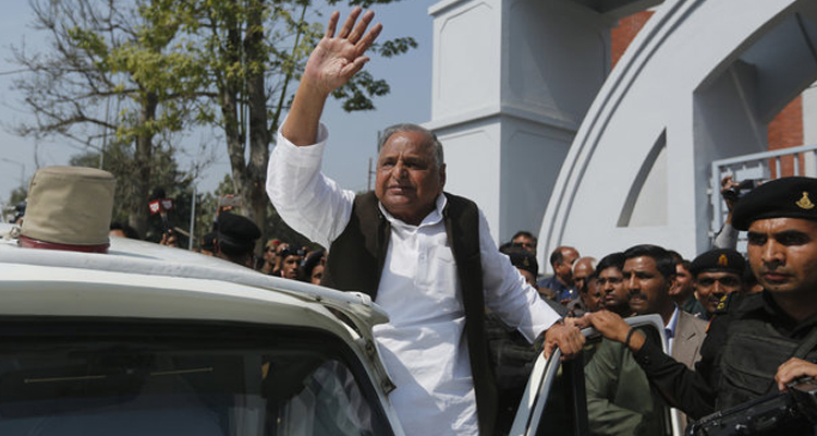 এ বছর মনোনয়ন জমা দেওয়ার দিন মুলায়ম সিংহ যাদব। ছবি: পিটিআই।