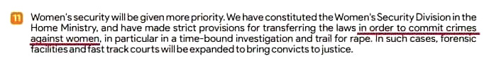 নারী-সুরক্ষায় প্রাধান্য দেওয়ার কথা ফের জানাল বিজেপি। ইস্তাহারে বলা হল, এ জন্য আলাদা একটি বিভাগই গড়া হয়েছে স্বরাষ্ট্র মন্ত্রকে। কিন্তু তার পরের লাইনে এ কী? ইস্তাহারের ৩২ নম্বর পাতায় ১১ নম্বর পয়েন্টে লাল আঁচড় কাটলেন নেটিজ়েনেরই একাংশ। যেখানে নারীর উপর ‘অপরাধ রোখা’-র কথা বোঝাতে গিয়ে লেখা হয়েছে ‘অপরাধ করা’-র কথা। লেখা হয়েছে, ‘‘এমন কড়া আইন আনা হবে, যাতে মহিলাদের উপর অপরাধ করা যায়।’’ সোমবার রাত পর্যন্ত ‘করা’কে ‘রোখা’-তে পাল্টানোর উদ্যোগ চোখে পড়েনি।