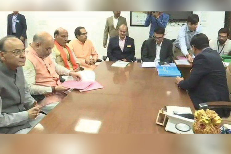 গাঁধীনগরে মনোনয়নপত্র জমা দেওয়ার সময় অমিত শাহ। ছবি: টুইটার থেকে সংগৃহীত।