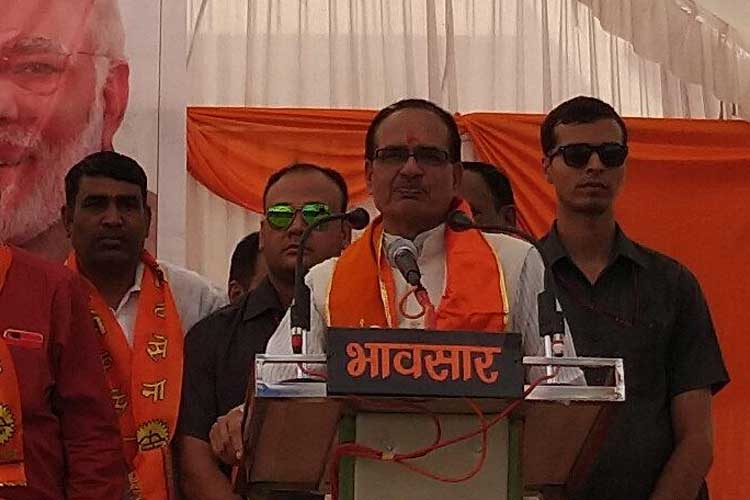 জনসভায় বক্তব্য রাখছেন শিবরাজ সিংহ চৌহান। —নিজস্ব চিত্র।