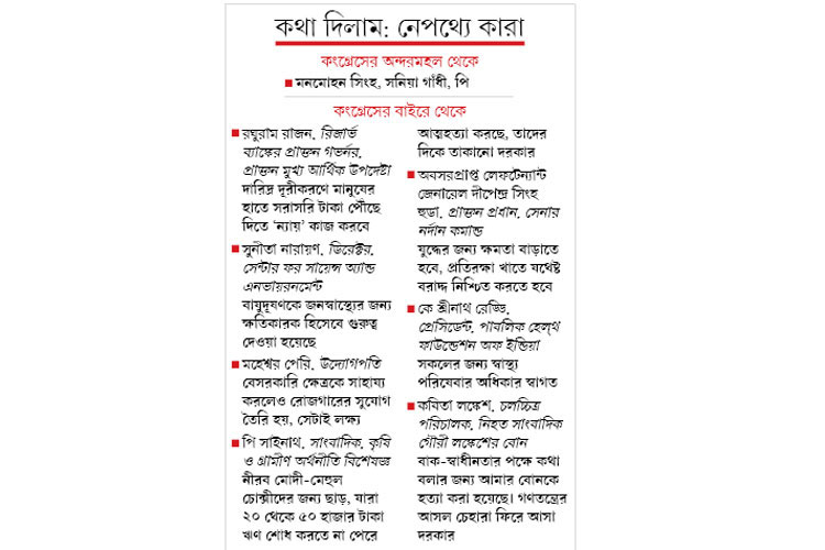 ক্ষমতায় এলে নীতি আয়োগ তুলে ফের যোজনা কমিশন ফেরাতে চান বলে আগেই জানিয়েছিলেন রাহুল গাঁধী। আজ কংগ্রেসের ইস্তাহার জানাল, নতুন চেহারা পাবে যোজনা কমিশন। যুক্তরাষ্ট্রীয় কাঠামোয় কেন্দ্র ও রাজ্যগুলির মধ্যে সমন্বয়ই হবে এর মূল কাজ। তবে পঞ্চবার্ষিকী পরিকল্পনাও ফেরানো হবে— এমন কথা কংগ্রেস বলছে না। ইস্তাহারে বলা হয়েছে, যোজনা কমিশন মাঝারি ও দীর্ঘমেয়াদি পরিকল্পনা তৈরি করবে।