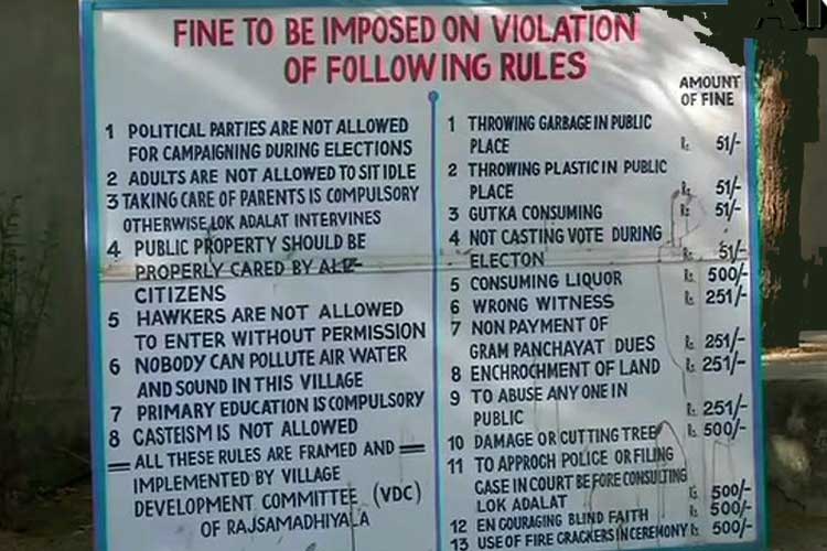 রাজসমাধিয়ালার গ্রামোন্নয়ন কমিটি গ্রামবাসীদের জন্য আলাদা নিয়ম বানিয়েছে নির্বাচন নিয়ে। যেমন, কোনও প্রার্থীই এই গ্রামে প্রচার চালাবেন না। গ্রামের প্রতিটা ভোটারকেই নিজের ভোট দিতে হবে। না হলে ৫১ টাকা জরিমানা। রাজসমাধিয়ালার গ্রামোন্নয়ন কমিটির সদস্যদের মতে, ভোটপ্রচার গ্রামের পরিবেশ নষ্ট করে। তাই গ্রামবাসীরাও গ্রামোন্নয়ন কমিটির এই অলিখিত নিয়ম মেনে নিয়েছেন।