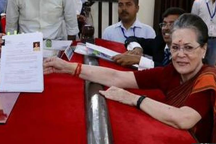 রায়বরেলীতে মনোনয়ন জমা দিলেন কংগ্রেস প্রার্থী সনিয়া গাঁধী। বৃহস্পতিবার। ছবি- এএফপি